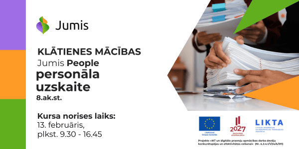 13. februārī kursi: "Jumis People – personāla uzskaite” (8.ak.st.)